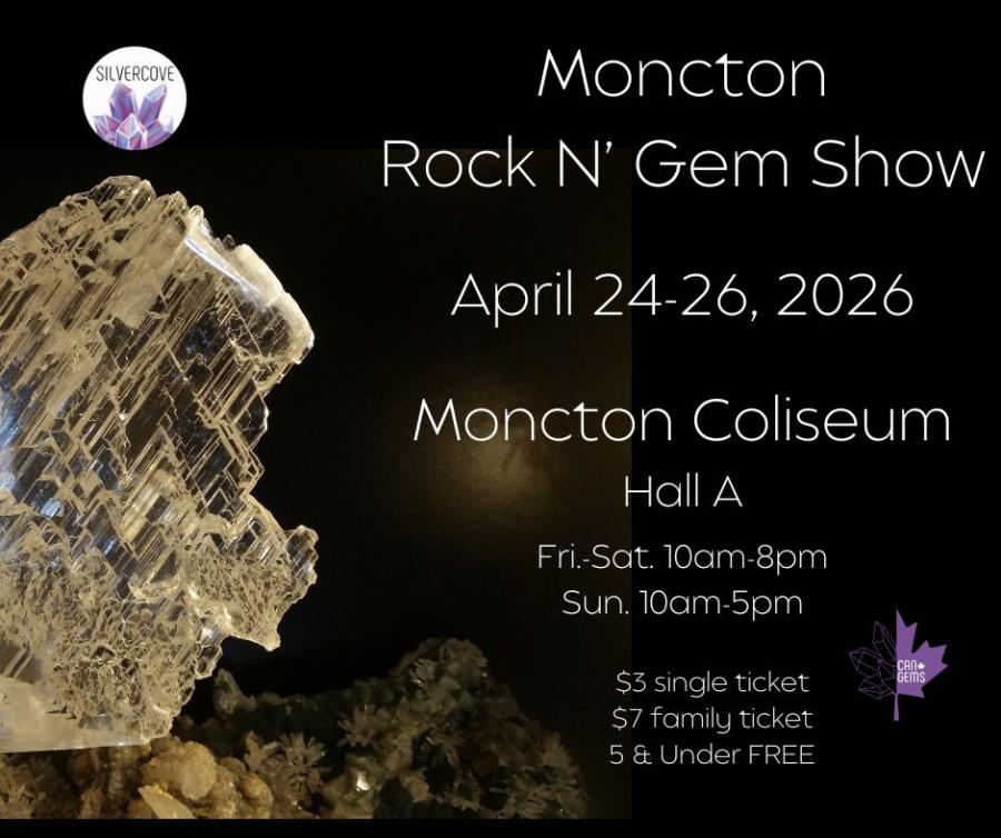 Plongez dans un univers où les plus belles créations de la nature sont à l'honneur. Le Salon des roches et des pierres précieuses de Moncton réunit des cristaux étincelants, des fossiles anciens, des pierres précieuses éclatantes et des bijoux artisanaux d'exception – autant de témoignages saisissants du génie de la Terre. De l'éclat de la pierre polie à l'histoire silencieuse inscrite dans chaque fossile, chaque pièce vous invite à contempler la beauté intemporelle de notre planète.
